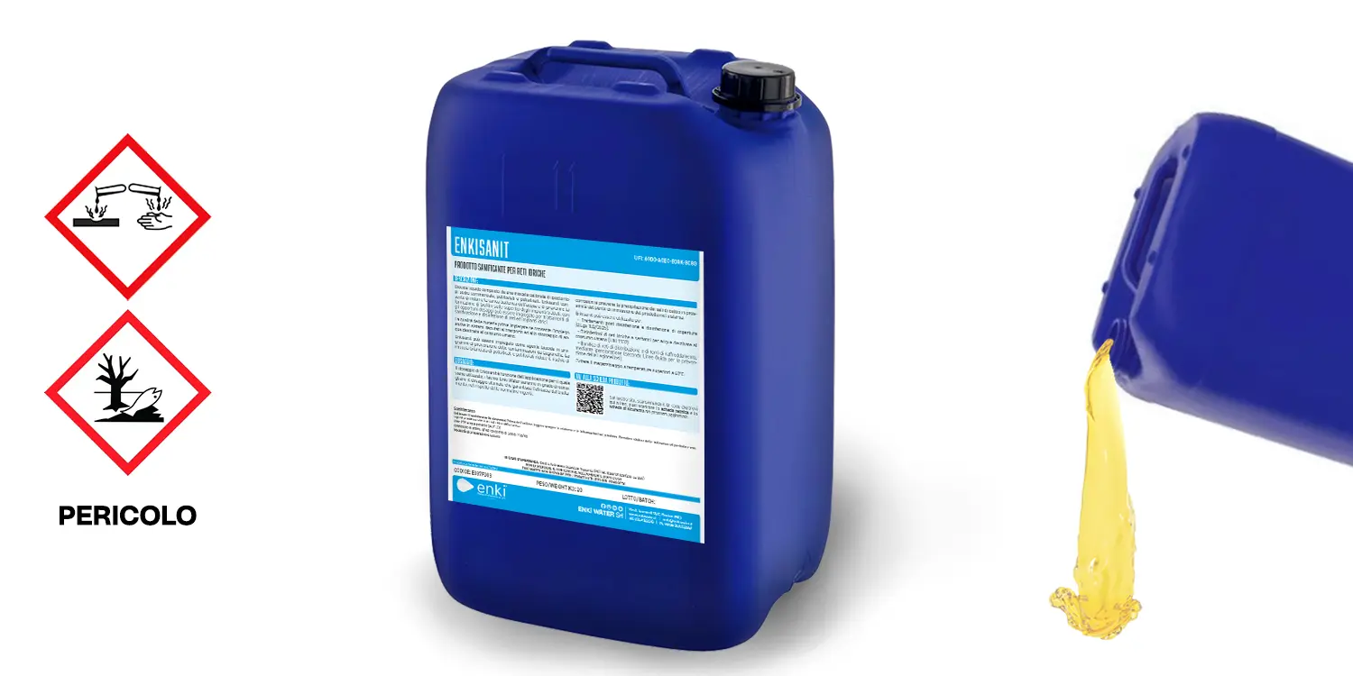Enkisanit è un agente sanitizzante adatto a tubazioni e contenitori di acqua potabile (impianti). Esso riduce la corrosione su acciaio al carbonio e rame, nonché la formazione di depositi. Enkisanit è un agente sanitizzante ad ampio spettro efficace contro batteri, funghi e alghe.